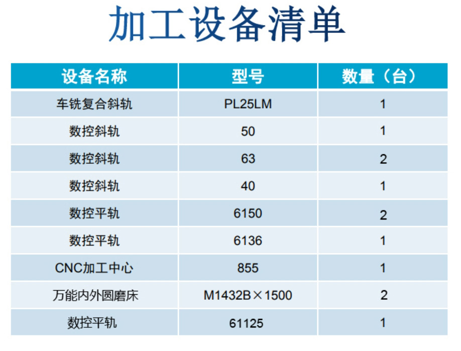 厂里设备有:数控斜轨车床4台、数控机床2台、车铣复合斜轨1台,855精密数控立式加工中心1台、数控锯床1台、数控/外圆磨床2台,以及各类检测工具,更好的确保所做产品质量。